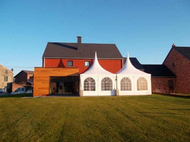 Tente carrée avec son toit pointu, elle a beaucoup de succès pour son aspect festif.